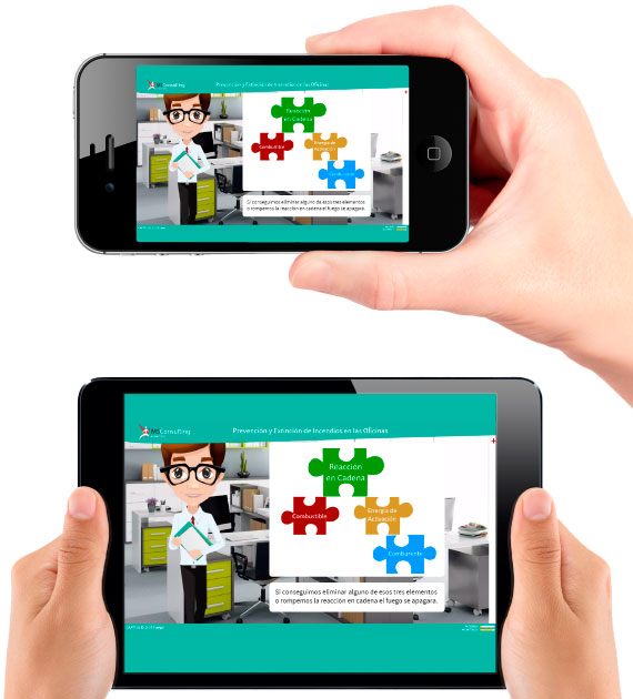 PresentaciónDiseñamos y producimos contenido e-learning multimedia a su medida, con una línea visualmente atractiva y fácil de entender.